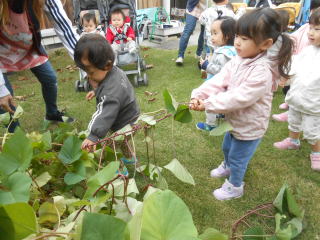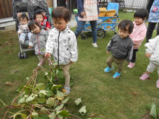| <さぁみんなでサツマイモを掘りあげましょう☆> |