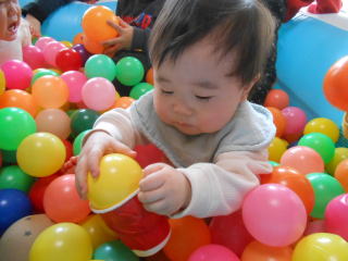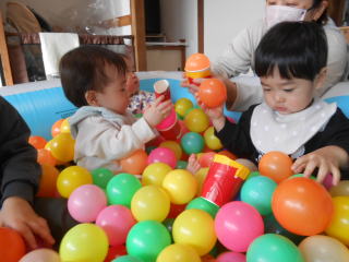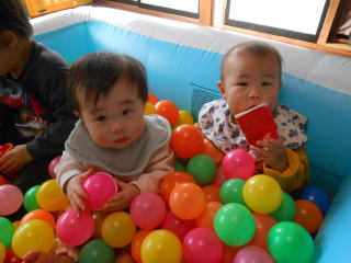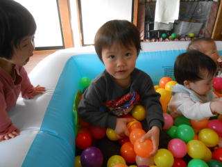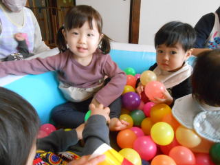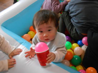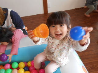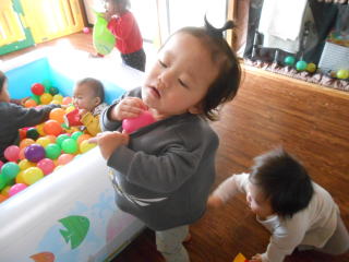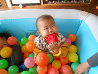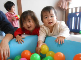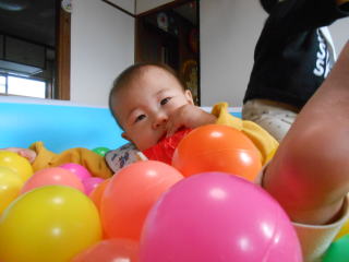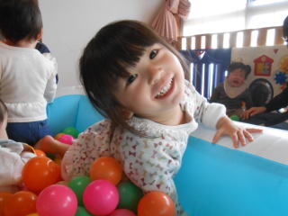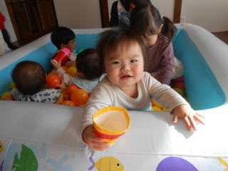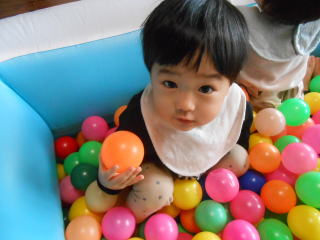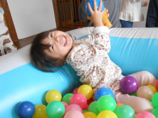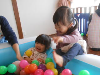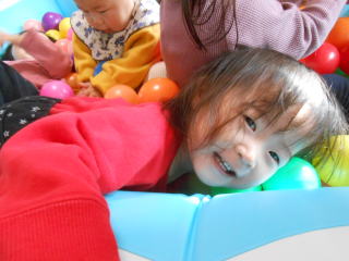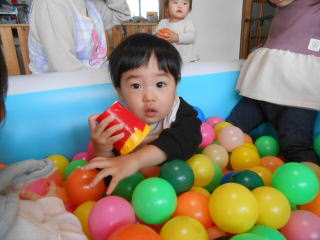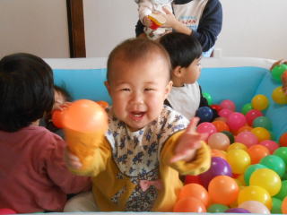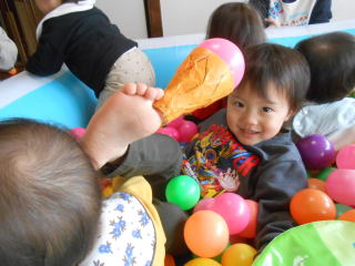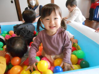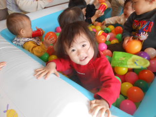 | <今日は大はしゃぎのボールプールから中継でお送りします♪> |