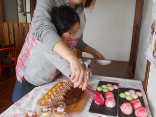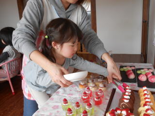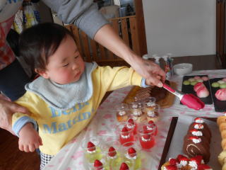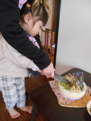 | <ケーキ入刀!> | <断面がキレイです☆> |